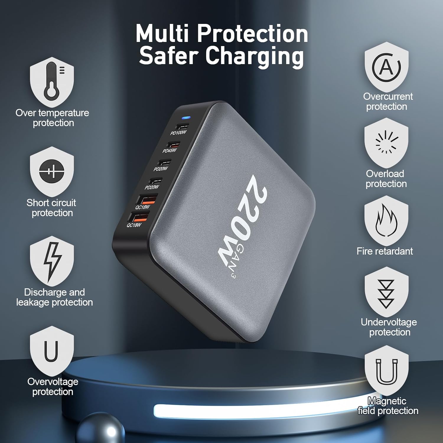 | Additional Features | 7 in 1 Charger with USB-A and USB-C ports, Fast Charging for Multiple Devices, GaN2 Compact and Portable Design, Universal Compatibility, Laptops, Tablets, Smartphone, and Smartwatches, Water Resistant, Short Circuit Protection, Charging Indicator |