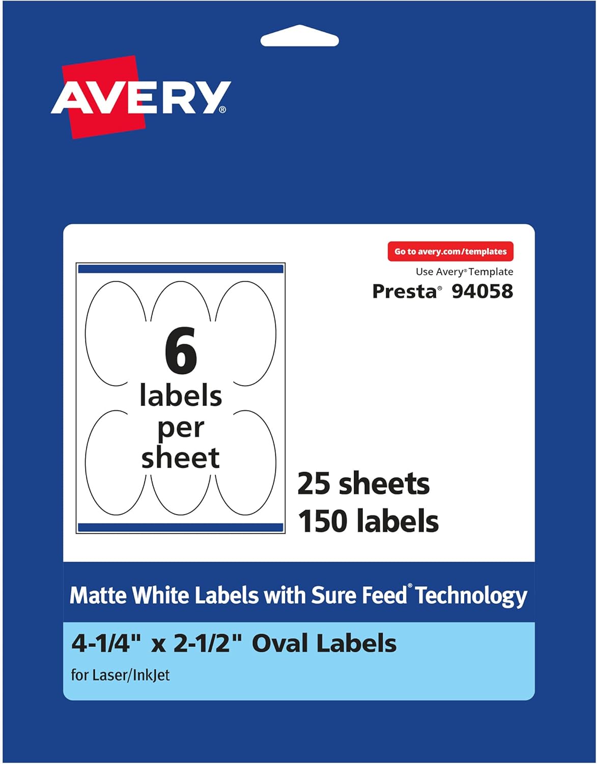 Matte white Avery labels are the perfect choice for any project. The smooth, matte white finish is a great fit whether you're designing product labels, shipping packages for work, making party favors or adding a creative touch to personal crafts or school projects. Each sheet of labels features Sure Feed technology which helps deliver a more reliable feed through your printer to prevent print misalignments and paper jams. A strong permanent adhesive is used to ensure that these labels stick and stay to paper, cardboard, plastic, glass, metal and more without curling or falling off. The versatile label shape can adapt to almost any use, just create your design with our free software and print. Avery Design & Print makes it easy to create customized labels from your own home or business so that you can print professional designs with your laser or inkjet printer. Our free browser-based software includes predesigned templates as well as tools for editing text and images so that you can create soap labels, ingredient labels, candle labels, canning labels, jam jar labels, perfume labels and more. Try it out today by searching for Avery template Presta 94058 on the Avery site.