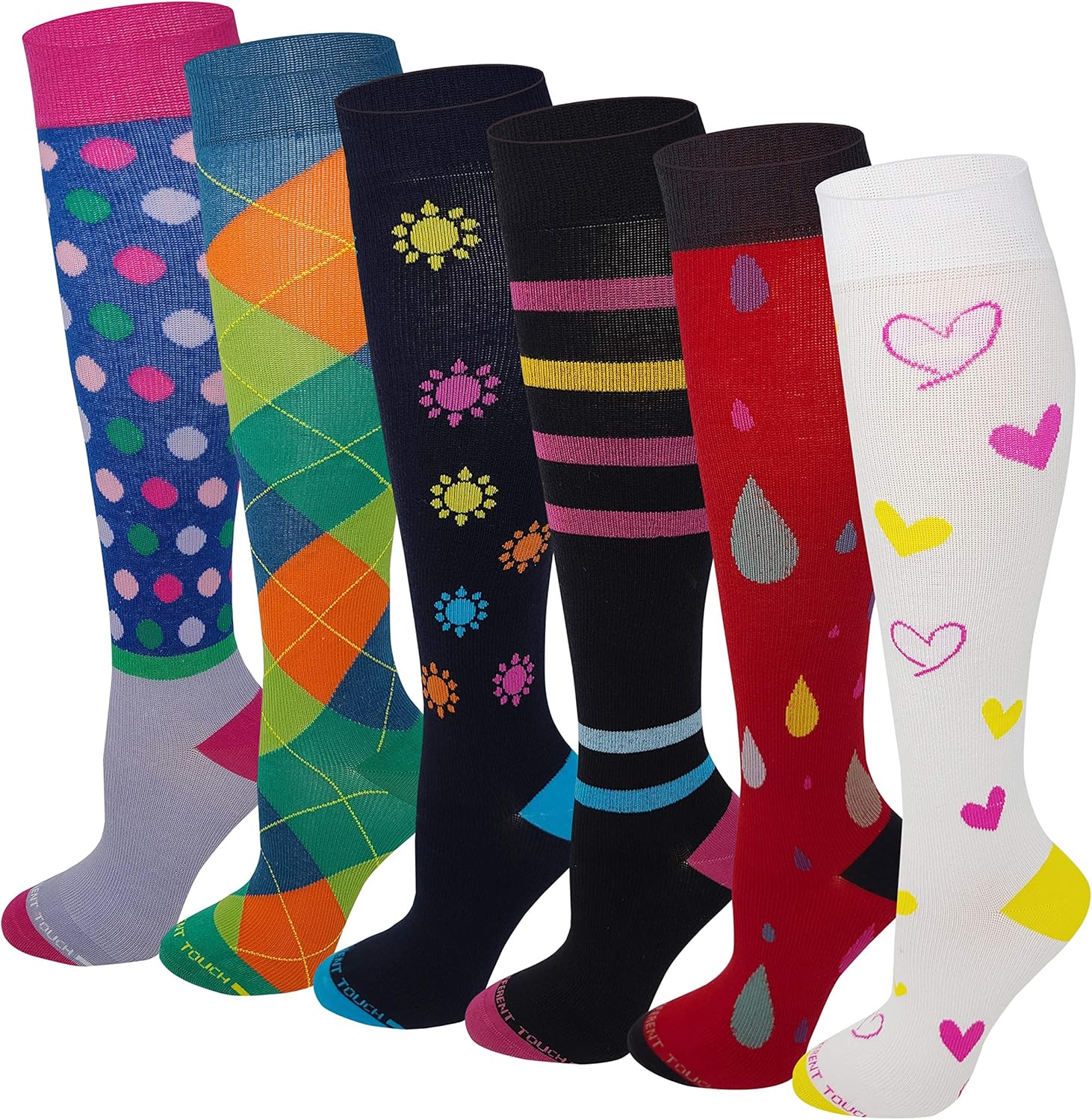 ELEVATE YOUR GAME TO THE NEXT LEVEL Runners are the one group of people who truly care about socks. Therefore, running without the proper socks is a terrible idea. If you're looking for a new pair of running and compression knee-high socks, DIFFERENT TOUCH has them all in a wide range of styles and cuts right here.Our compression socks feature a tested, Class I mild compression level of 8-15 mmHg. This graduated lower -level compression is great for assisting blood flow and support for everyday wear all day