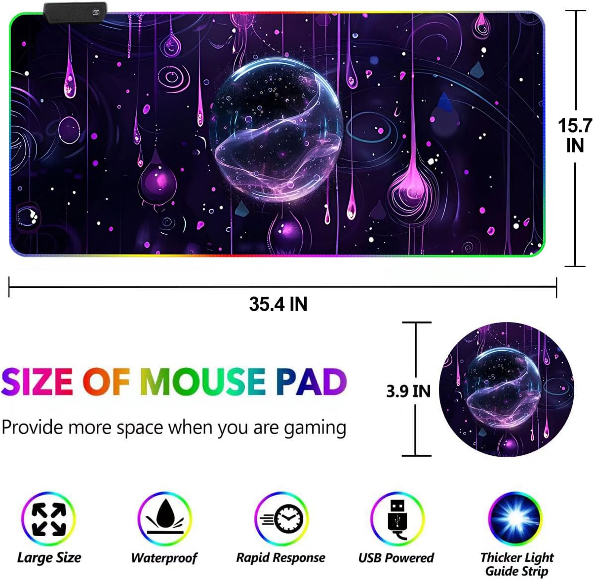 Are you still worried about how to be in the game when the immersion? Are you still worried about how to dress up the game space? Choose DINKYRGB large gaming mouse pad, 14 kinds of lighting mode (red, blue, green, purple, cyan, yellow, light cyan, alternating wave, synchronizing wave, alternating flash, alternating red changing, lights off, synchronize breathing switch at will, for you to eliminate the trouble!!!Product Specification:Size:Large RGB Mouse Pad- 35.4 in x 15.8 in x 0.12 in.Cup coaster- 3.9 in x 3.9 in.The Data Line Length- 1.8m .Material: USB Interface + Non-slip Rubber base + Lycra cloth surfacePackage Included:1 × Large RGB Gaming Mouse Pad.1 x cup coaster. 1 x Data Line.