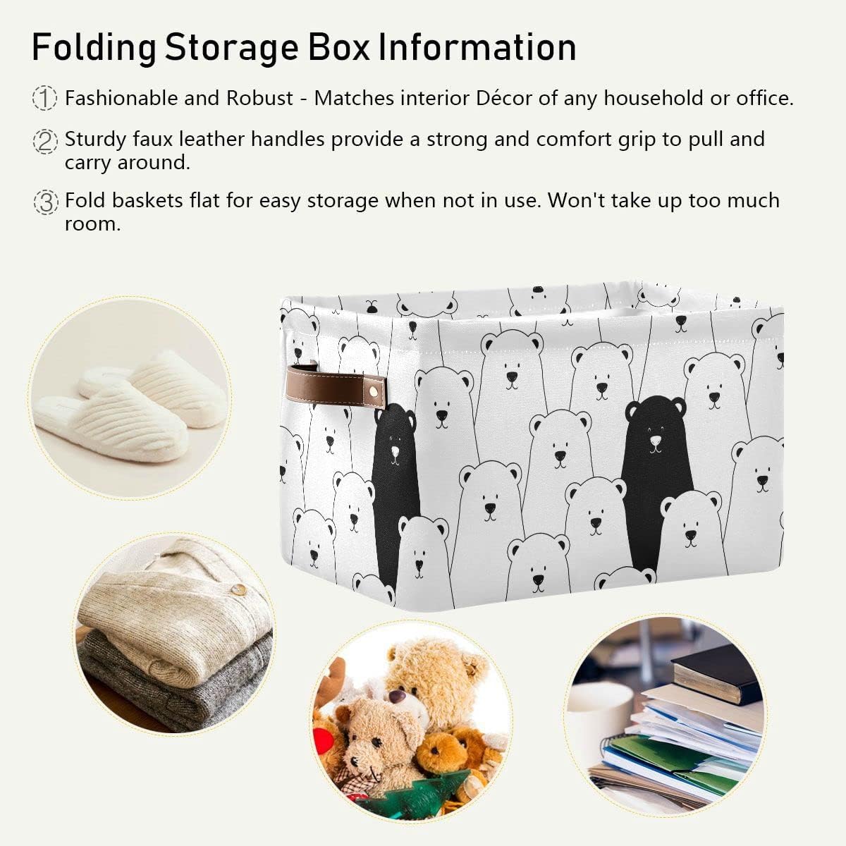 Our storage bins are not only household life good helpers but also charming decorations. Chic patterns allow it to fit into living room to hold throw blanket, pillows, and reading materials, as well as bathroom for towels, or as a laundry hamper. Modern and stylish design, great for a nursery, kids room, playroom, craft room, bathroom, kitchen, closet and shelf. Foldable design, you can folds them up when you don't use it.