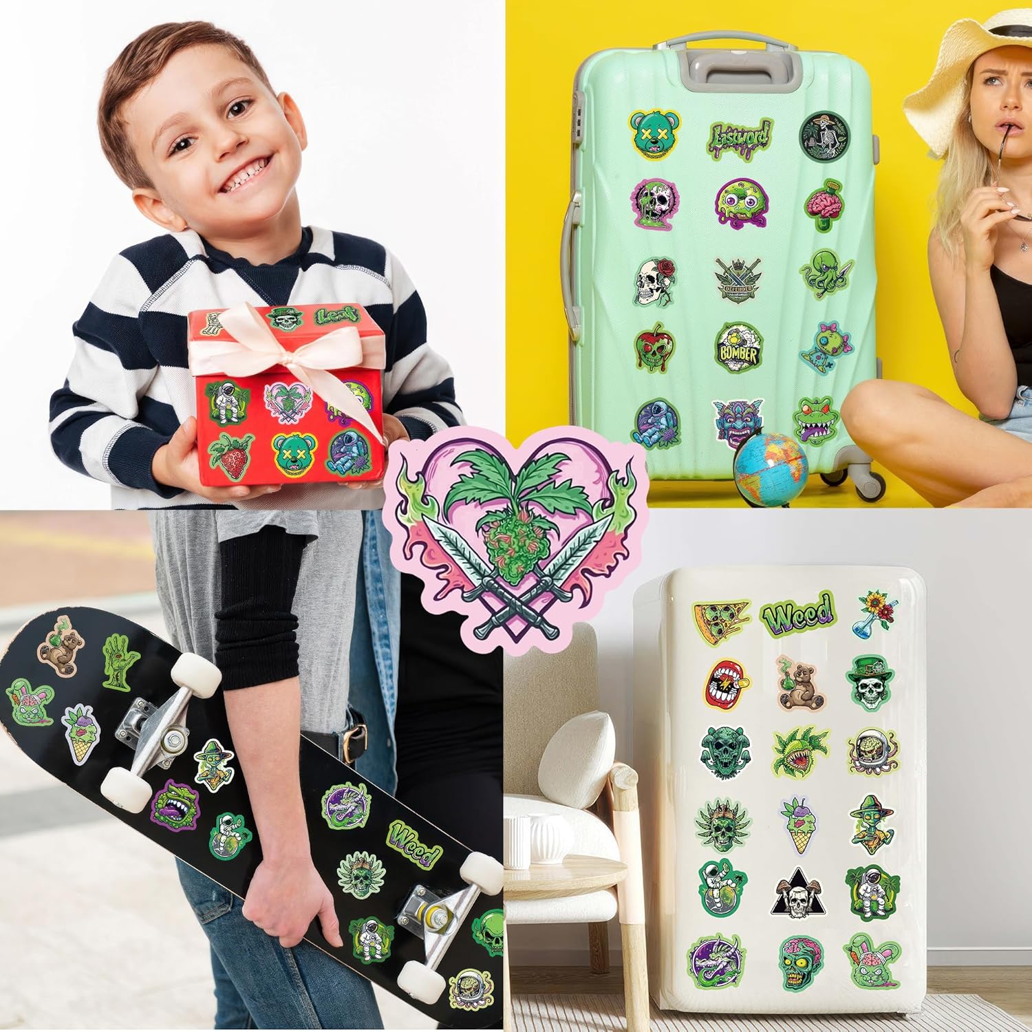 Theme:Green Horror Cartoon Graffiti Sticker Material:Made vinyl PVC Single Sheet Stickers Size:About 1.18~2.36 inch of each design Features:Clear pattern and exquisite printing,sun protection and waterproof How to use:Get your stickers,clean the any smooth surface,stick on,then use your imagination to create works