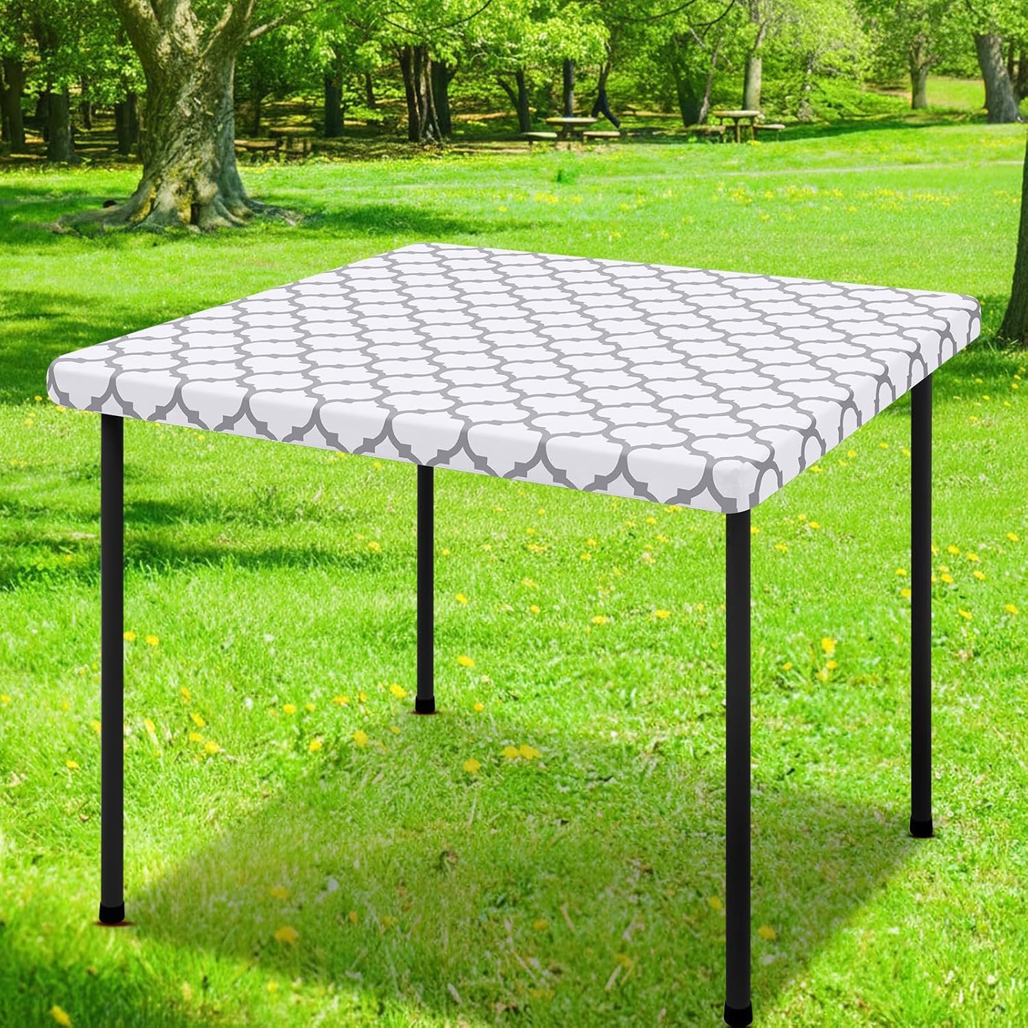 Smiry elastic table cloth brings convenience to your dining.Features:- Elastic Fitted & Wind Proof- Waterproof & Spillproof- Reusable & Scratch Proof- Convenient & Wipe Clean- Non-Slip Flannel BackingColor:Grey; Black; Blue; Teal; White; Khaki; Yellow; Red; Wood; Clear;Aqua;Sage Green;Light blue;Pink;LavenderSize:Rectangle: 24x48 inches; 4ft - 30x48 inches; 5ft - 30x60 inches; 6ft - 30x72 inches; 8ft - 30x96 inches; 36x60 inches;36x72 inches;36x96 inches;Round: 36" - 44" Round; 45" - 56" Round; 57" - 103" Round;My desk is made of wood. Will this tablecloth keep the water out of my desk?Our tablecloths are covered with a waterproof vinyl material that effectively protects table away from water, milk, juice and other liquids from spilling onto the table surface.I want to use this tablecloth outdoors. Will it blow away?We specially added elastic rope around the tablecloth, so that the table cover can fix on the table without moving.