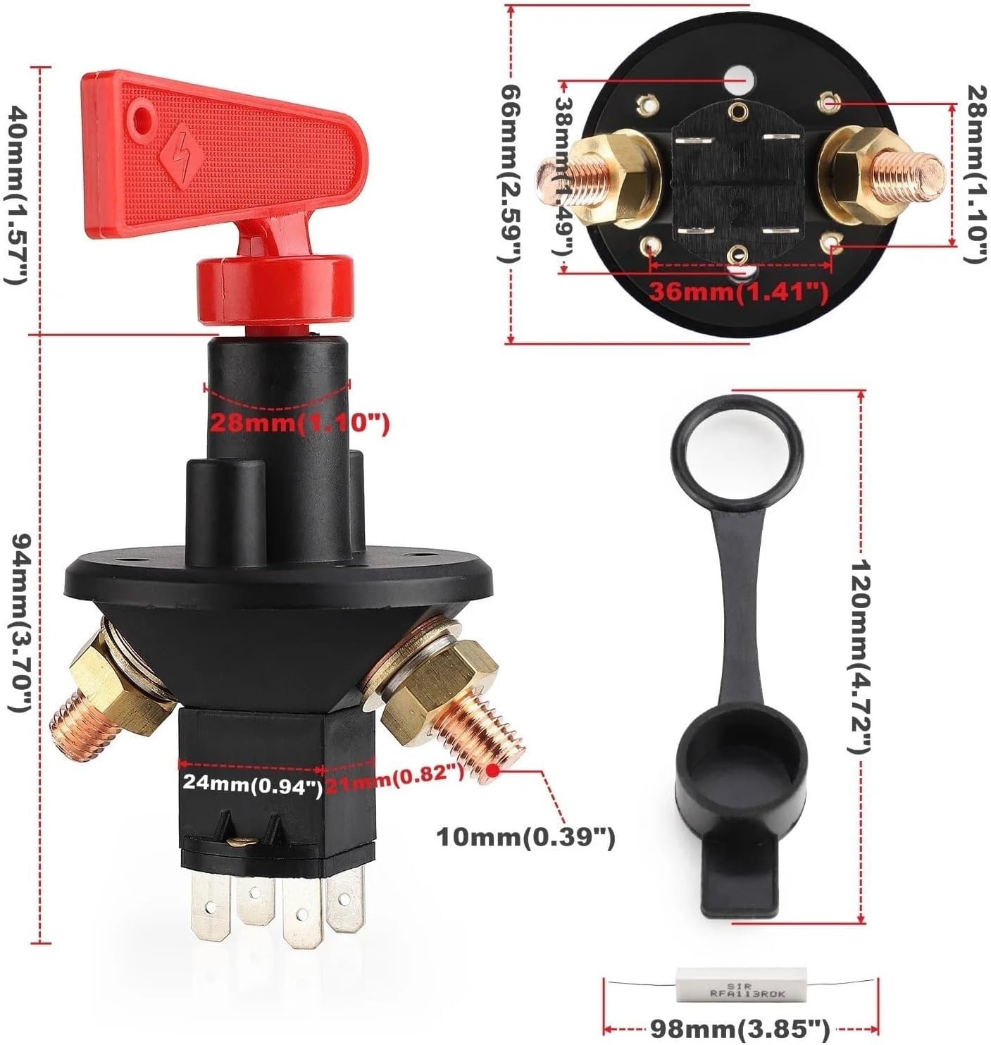 Specification:Main color: BlackSize: as the picture showValtage: 12V 24Vfor FIA Compliant4 TerminalsRemovable KeyPackage included1x Isolator Cut Off Switch