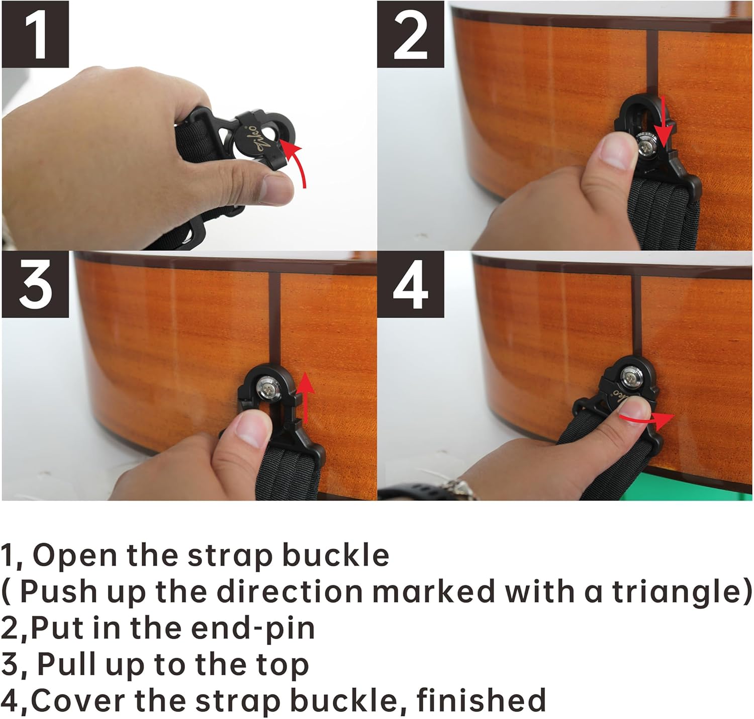 The Ziko Quick-Release Guitar Strap System offers a versatile solution for musicians seeking convenient strap attachment. Installation is straightforward with a simple 4-step process: open the strap buckle, insert the end-pin, pull up to secure, and close the buckle. For safety and instrument protection, it's crucial to select the appropriate type based on your instrument and strap button configuration. The quick-release mechanism allows for swift strap removal while maintaining secure attachment during use. The system's universal compatibility makes it an ideal choice for musicians who play multiple instruments or need to switch straps frequently, Suitable for acoustic guitar straps, electric guitar straps, classical guitar straps, bass guitar straps, and ukulele straps